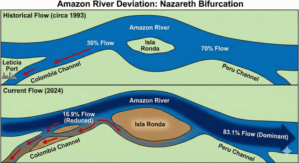Since the early 2000s, researchers from the Universidad Nacional de Colombia warned that the Amazon was behaving as an anastomosing river—a multi-channel system prone to rapid switching. They prescribed specific engineering interventions, such as submerged spurs (espolones) and strategic dredging at the Nazareth Strait, to guide the flow back to Colombia.